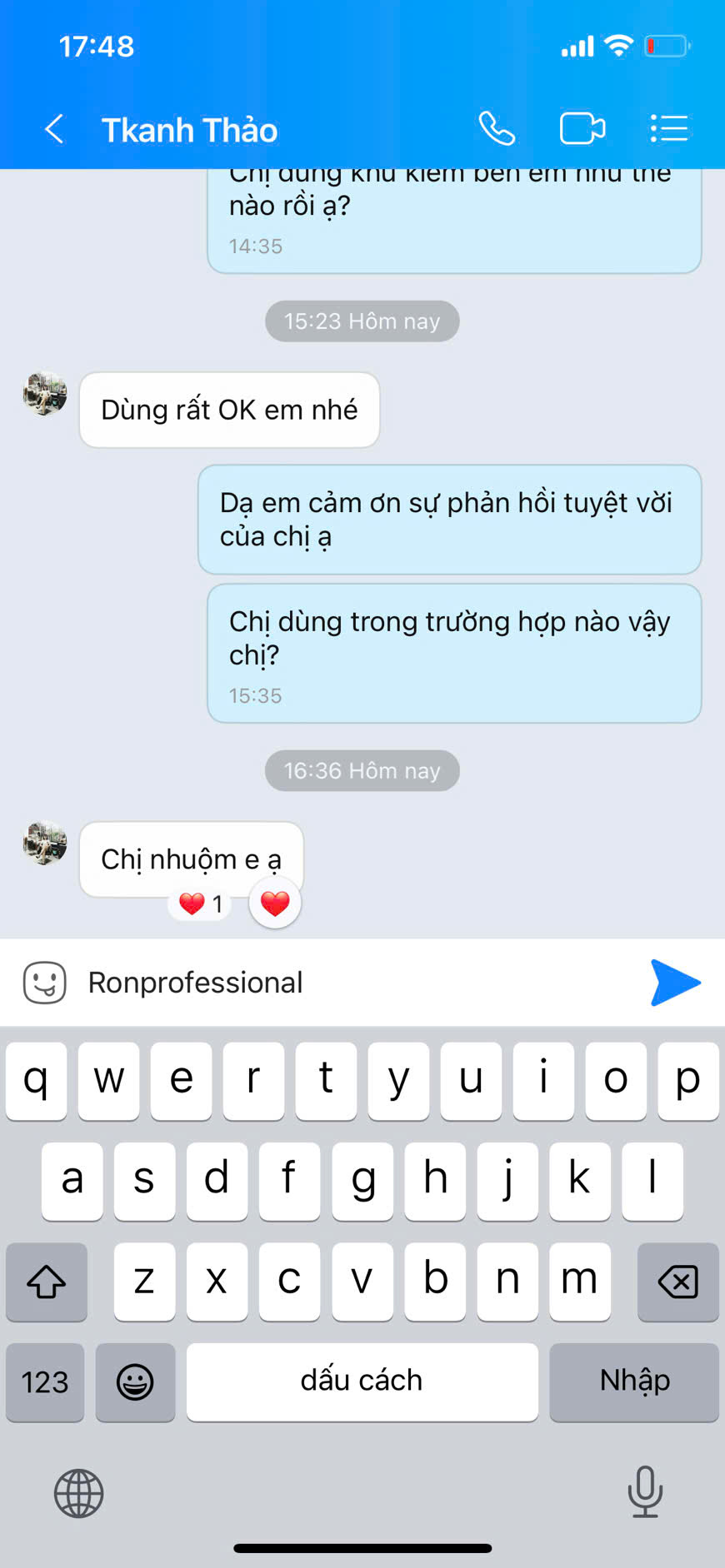 • Trước khi bôi thuốc uốn, duỗi, nhuộm hoặc tẩy, nhỏ RON PROFESSIONAL vào bát thuốc.